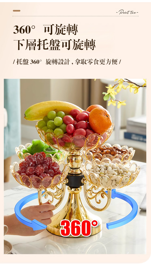 多層旋轉高檔水晶果盤這款精美的多層旋轉水晶水果盤可提升您的用餐體驗